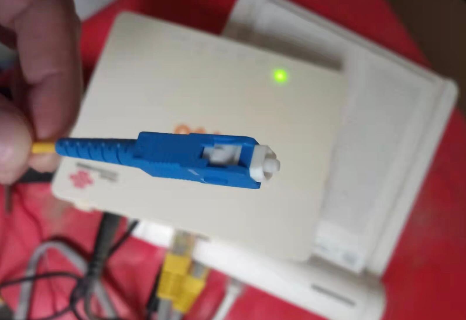 2、连接光猫的光纤小方头接头有污渍导致接触不良,用酒精擦拭干净,重插光纤接头。
