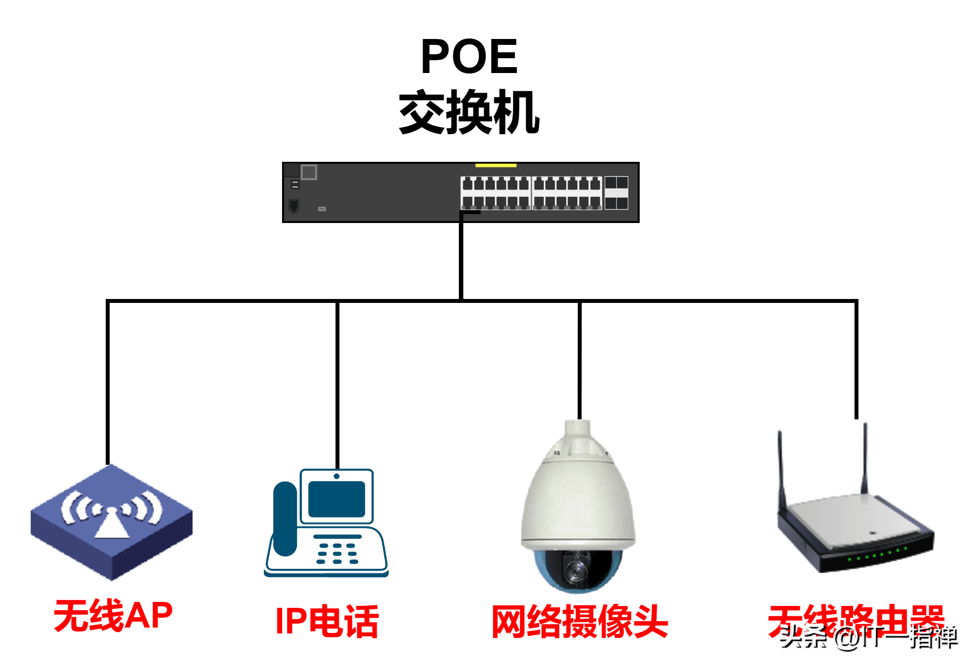 说人话就是:用一根网线就能够同时完成网络通信和供电,比如支持POE供电的网络摄像头、还有AP面板,都是只用一根网线就能完成网络的连接与供电。