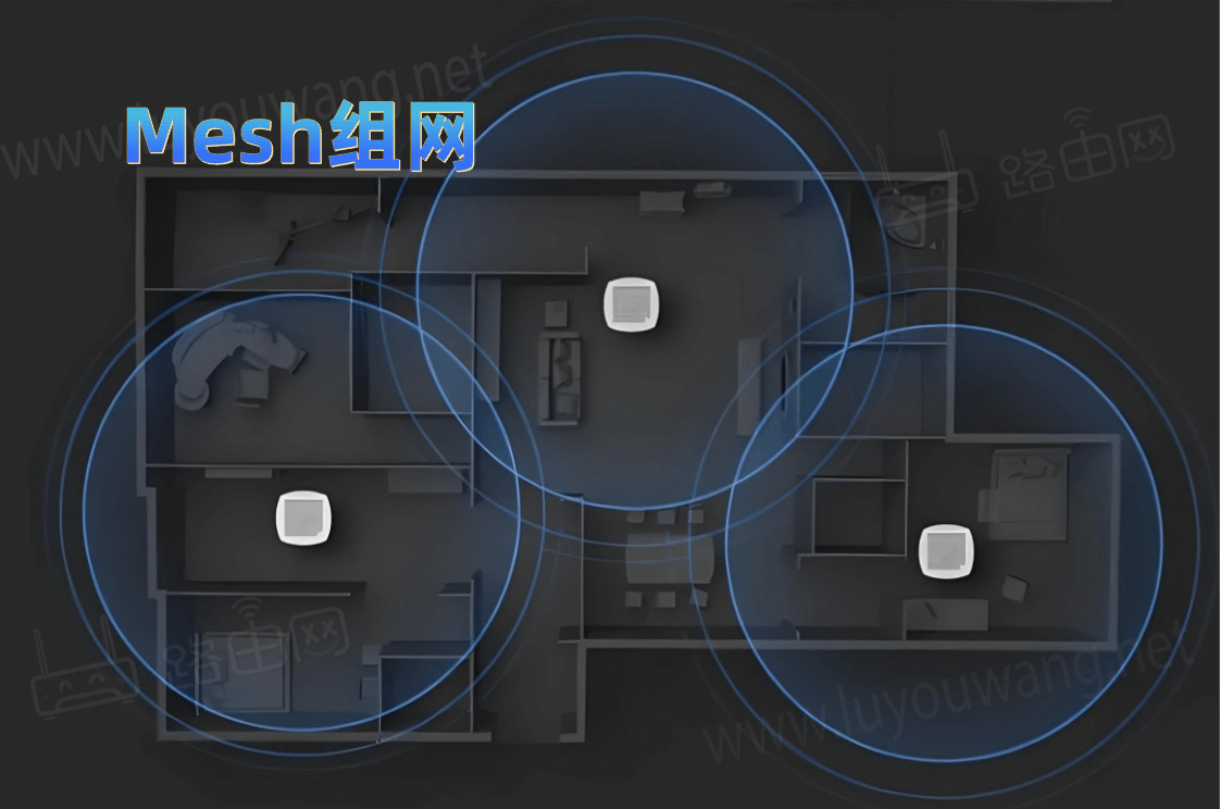 现在大多数的路由器都支持Mesh组网,Mesh组网分为有线Mesh组网以及无线Mesh组网,在情况容许的情况下,建议还是使用有线Mesh组网,即子Mesh和主Mesh通过网线相连、通过交换机相连也可以,有线Mesh比无线更加稳定。如果没有网线预留,只能无线Mesh,建议子Mesh路由器和主Mesh路由器尽量靠近,不然速度衰减会比较大。