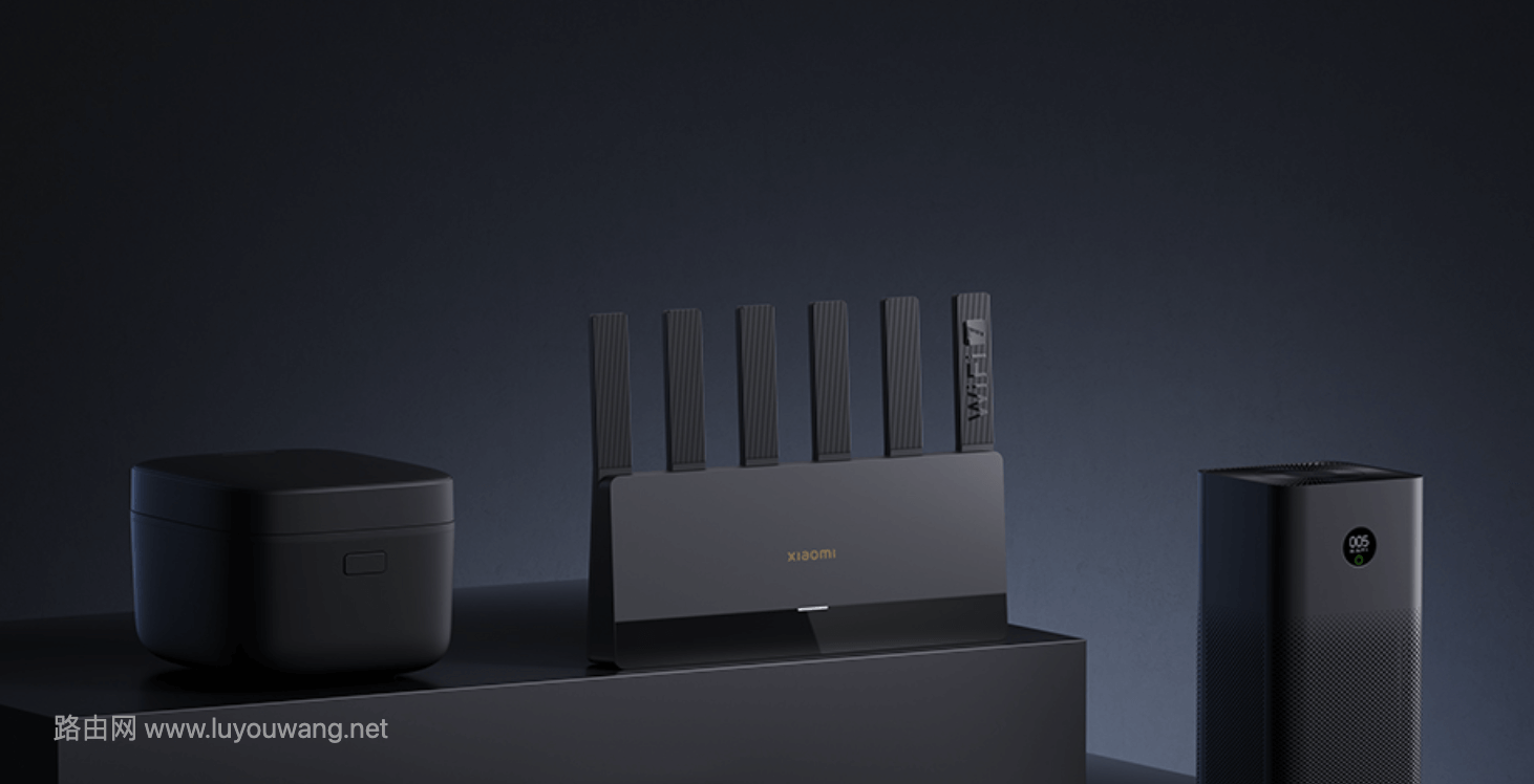 小米 BE6500 路由器采用纯黑外观设计,支持 Wi-Fi 7 协议和 MLO 双频聚合,支持智能终端同时连接两 2 个 WiFi 频段。该路由器双频段均支持 4KQAM 高阶调制技术,可压缩数据密度,提升单位时间数据吞吐。