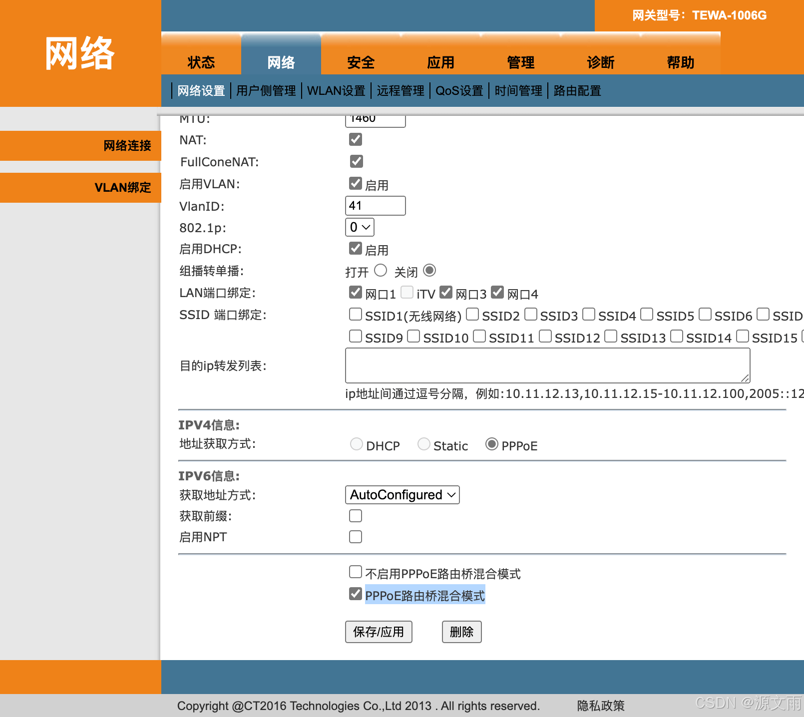 这个型号的光猫支持PPPoE路由桥混合模式,如果你的宽带支持多次拨号,可以打开它,即可在光猫自身能拨号上网的同时使用路由器再拨一次号,这样一来光猫的无线功能就不会被浪费,毕竟这款猫的无线速度还是可以的,测速可以跑到600~800M,日常使用完全没有问题。