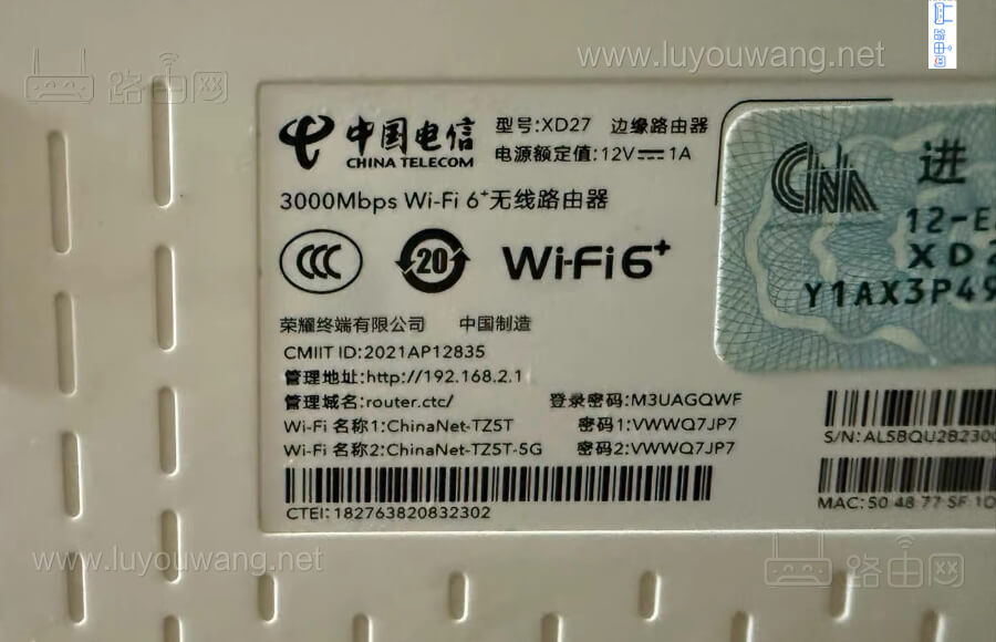 定制版本的路由器一般都会标注有登录管理地址、默认WiFi名称、登录密码,如下图: