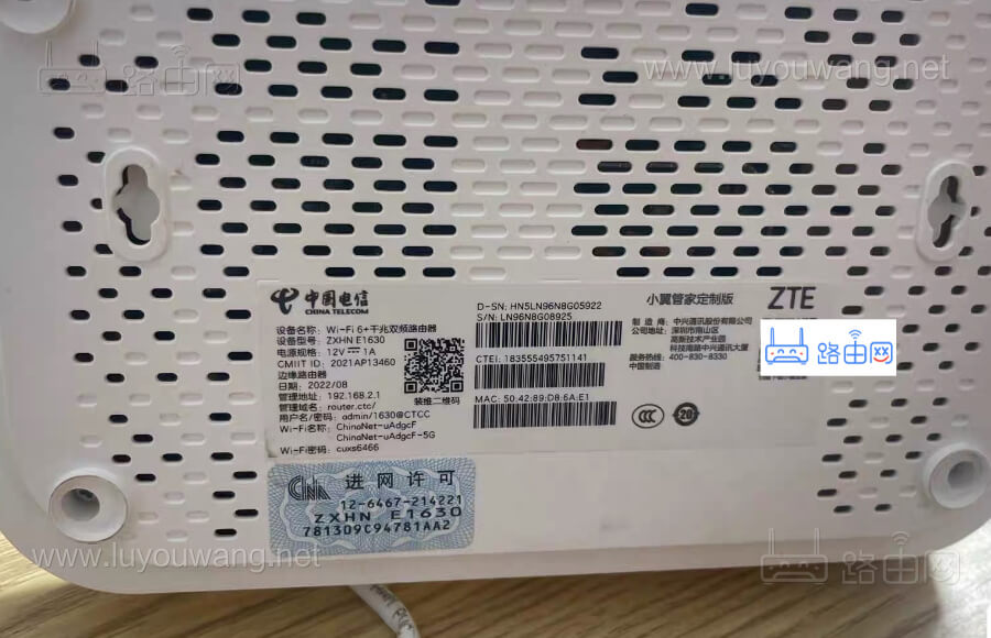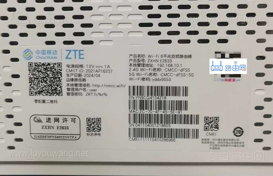需要特别注意的是,中兴有很多型号的路由器是给中国电信、中国移动以及中国联通定制的,所以运营商版本的登录地址以及登录密码也会不一样,我们可以在中兴路由器底部的铭牌标签上得到正确的登录管理地址以及用户名、密码信息,如下图: