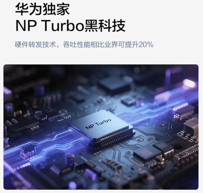 华为坤灵 FG736 支持 DPS 公平性调度黑科技,保障每个终端稳定上网,支持华为独家 NP Turbo 硬件转发技术,吞吐性能相比业界可提升 20%。