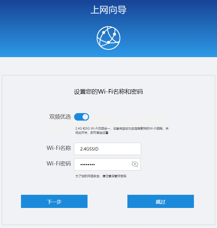 设置Wi-Fi名称和密码,点击“下一步”,跳转到步骤6。