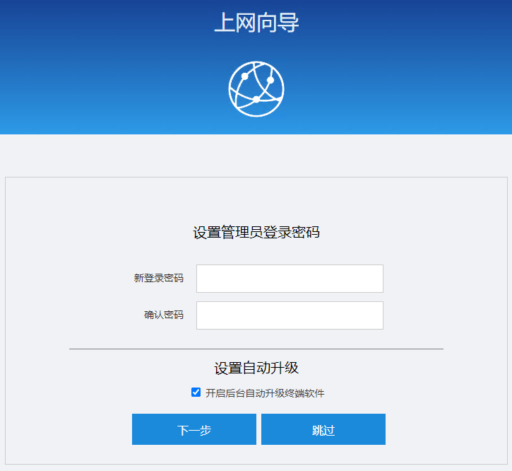 设置管理员登录密码,再次登录Web界面时,使用此密码登录。点击“下一步”。