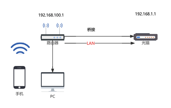 不少用户将家里的光猫改成桥接模式,使用路由器拨号上网,但是光猫改桥接模式后,就不能通过路由器直接访问光猫后台了,需要直连光猫(跳过路由器)或者光猫WiFi后才可以访问光猫的后台,一些用户光猫改桥接后为了避免无线wifi频段影响或者信号过多,将光猫无线wifi功能关闭了,那么想进入光猫管理后台界面就非常的麻烦了,本文介绍一根网线实现上网和访问光猫后台。