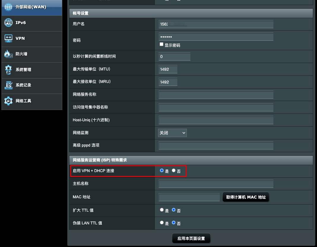 网络设置→内外网设置→WAN1,将ADSL/PPPoE拨号改为基于物理网卡的混合模式。