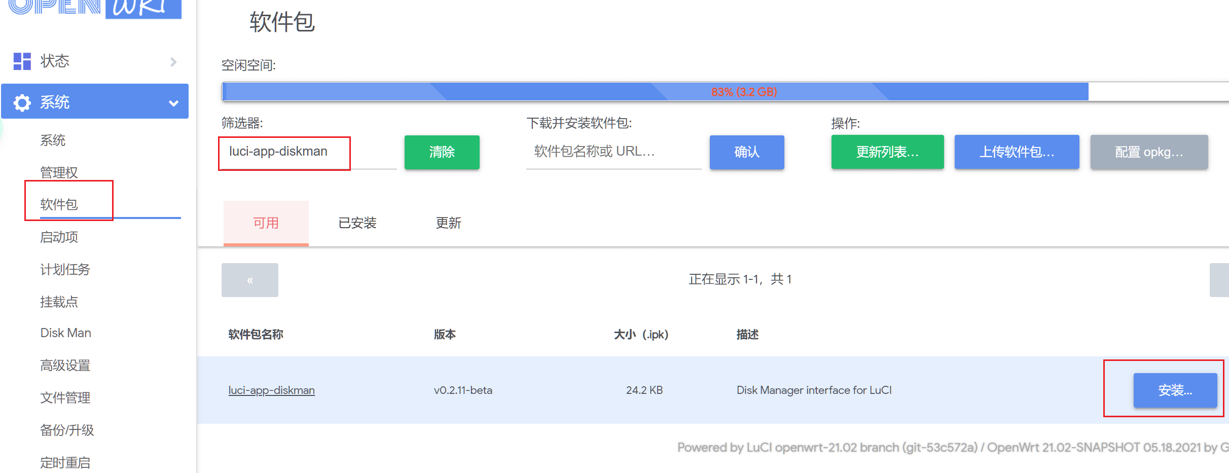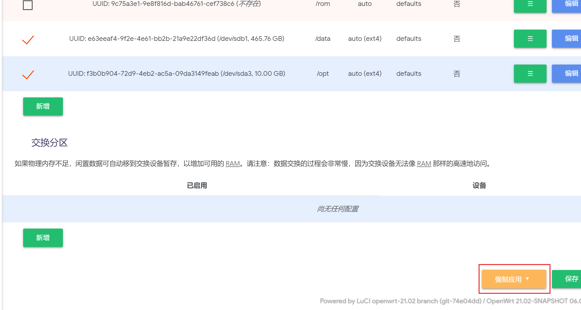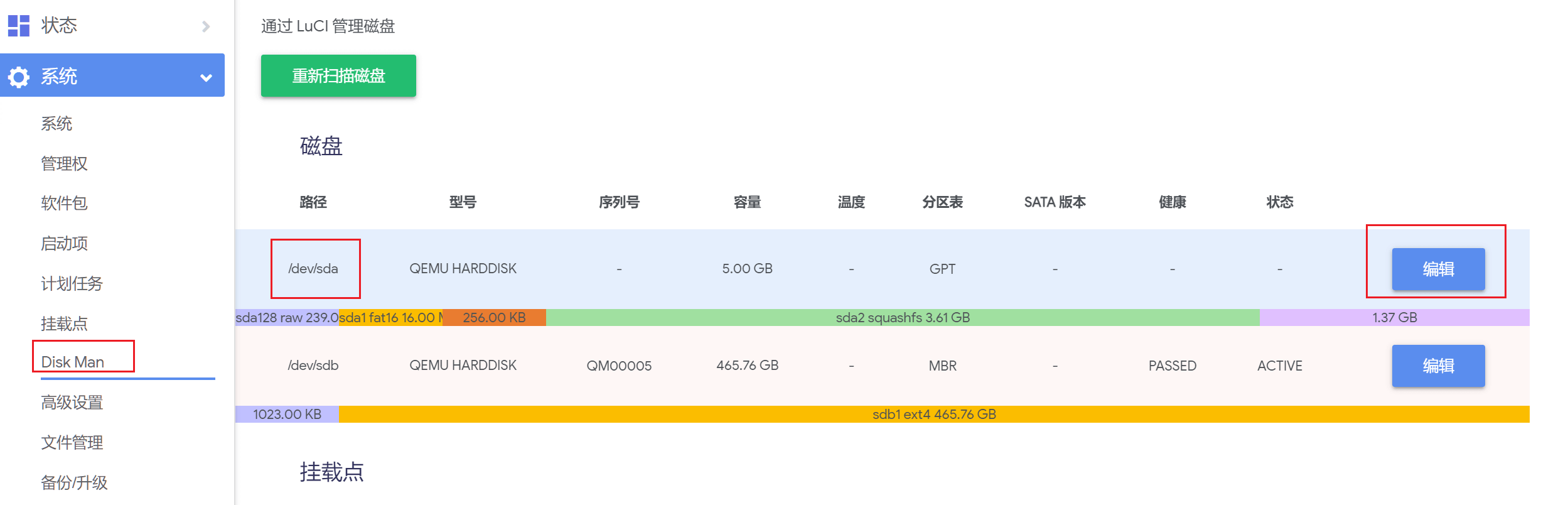 由于OpenWrt系统默认的根分区太小(默认124M),无法安装太多软件包,那么我们可以通过通过添加新的硬盘分区达到扩容根分区的目的,从而将根分区扩容到我们理想的大小。