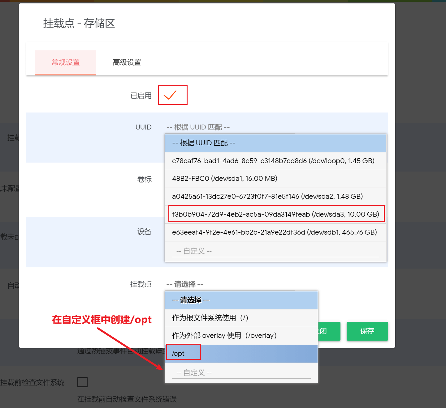 并卸载已挂载的/opt 否则会挂载失败 !!!