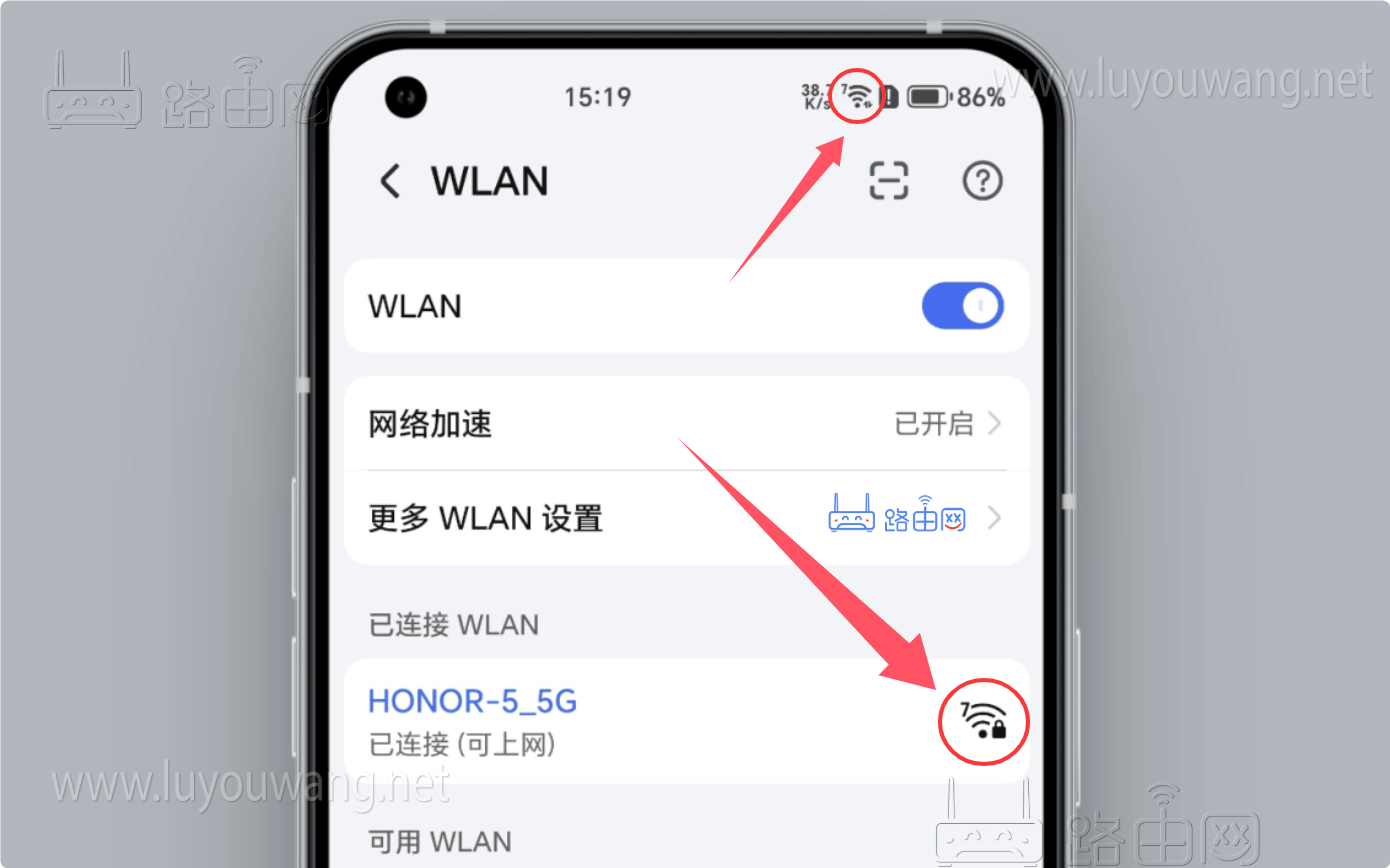 以荣耀手机为例,荣耀设备目前有以下几类WiFi图标,图标上的小数字代表当前使用的WiFi技术版本(比如WiFi 6/WiFi 7)。这个显示结果是手机和路由器互相”握手”决定的,版本数字越大,相当于信息传输的”高速公路”越宽,理论上能带来更快的网速和更稳定的连接体验。
