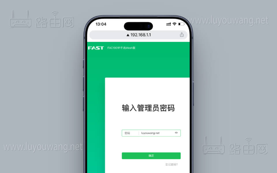 打开FAST路由器登录管理页面后,输入该路由器正确的管理员密码登录。