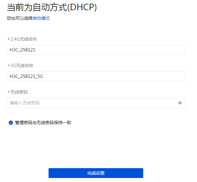 - 设置管理密码。默认将Wi-Fi密码作为路由器管理密码。