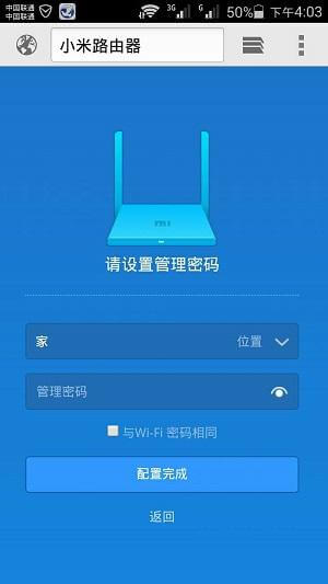 也可以勾选下面的“与Wi-Fi密码相同”的选项,即把WiFi密码作为管理密码。—— 点击“配置完成”。