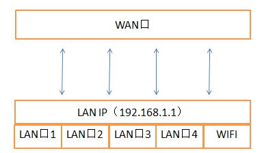 2.电脑或者手机上网时将流量发给LAN IP(相当于网关),然后再转给WAN口
