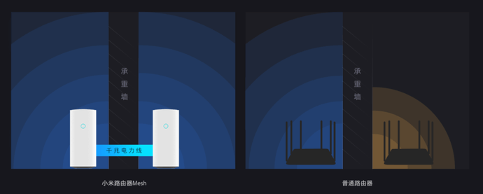 另外一种就是利用类似无线信号桥接的方式来对网络信号进行扩展,这里类型路由器一般会采用 Mesh 组网方式。
