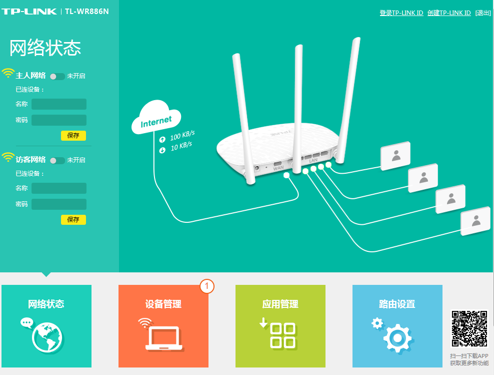 成功登录路由器管理界面,在管理界面,您可以查看无线密码、设置宽带连接以及网速限制、WDS桥接等一系列功能应用。