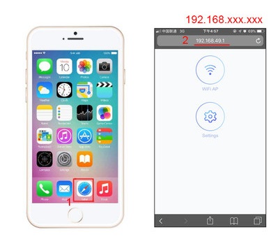 打开智能手机上的网页浏览器(chrome、safari),在地址栏中输入:192.168.49.1。