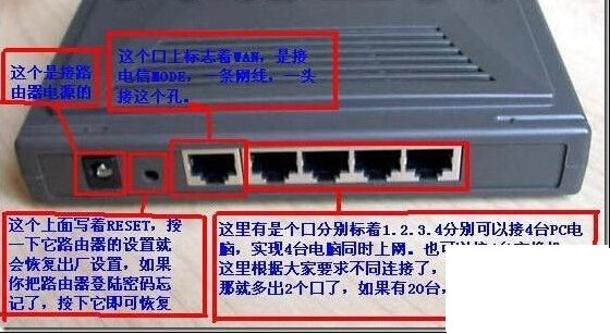 通常遇到这种故障,我们首先得重置路由器设置,用牙签或者铁丝抵住路由器后面的小孔,抵住的同时拔掉路由器电源;然后把接外网的网线接在路由器WLAN口上,把自己的电脑接在路由器的LAN口上面。 如下图: