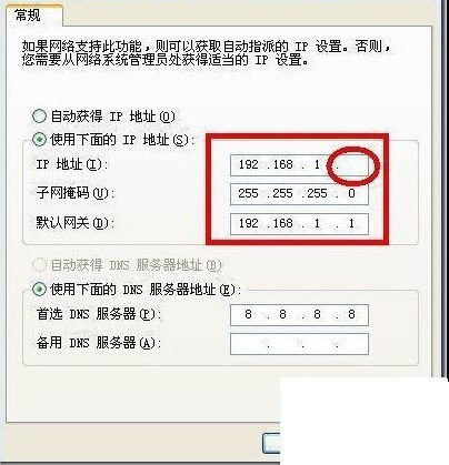 IP地址输入192.168.1.X(X可以是2-254的任何一个数字,最好是2-8),然后在子网掩码上点一下,如果是WIN2000或 WINXP就会自动填上(255.255.255.0)再在默认网关上填上:192.168.1.1,现在再确认就OK了!,相信你现在也可以打开http://192.168.1.1了!