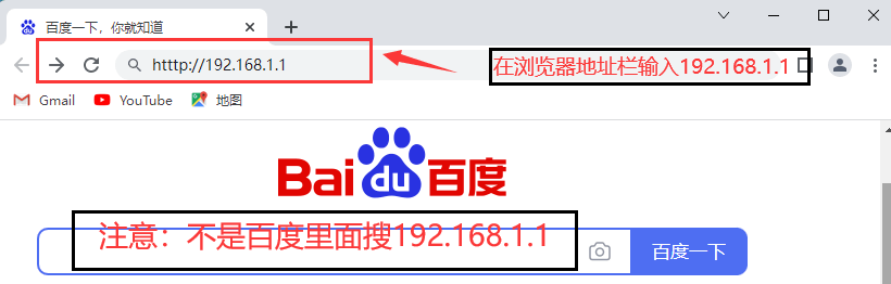 2.浏览器地址栏192.168.1.1输入不正确。正确输入方法是在浏览器地址栏输入19.168.1.1或者http://192.168.1.1。