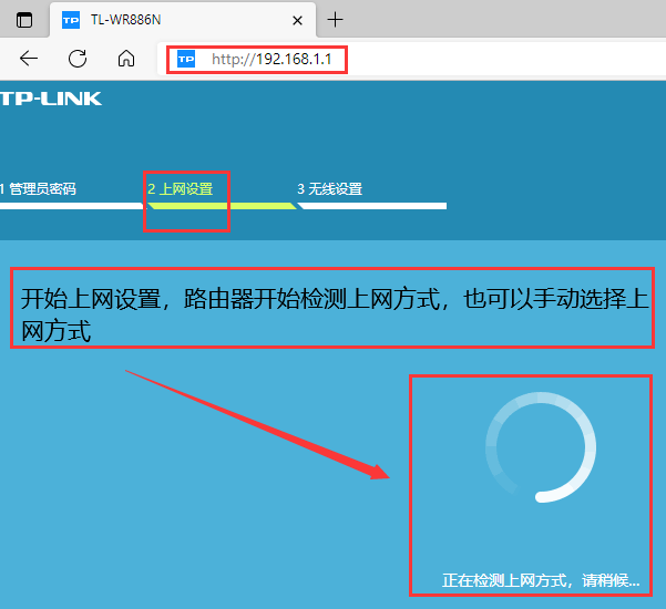 (3)确认浏览器地址正确输入http://192.168.1.1。