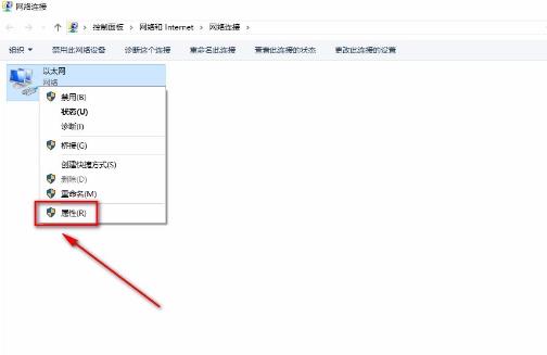 界面上就会出现一个网络连接页面,我们在界面上右击“网络连接”,并在出现的下拉框中选择“属性”选项