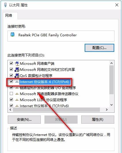 随后界面上就会弹出一个以太网属性页面,我们在页面上找到“Internet协议版本4(TCP/IPv4)”选项并双击即可。