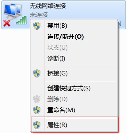 3、找到“无线网络连接”,“右键”点击并选择“属性”。如下图所示: