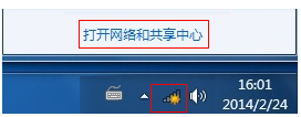 1、点击电脑桌面右下角无线信号的图标,在弹出的对话框中,点击“打开网络和共享中心”。如下图所示: