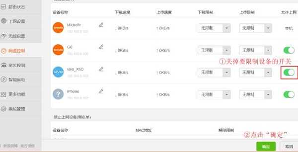 被拉黑的设备是无法上网的,设置白名单,只有白名单中的设备可以上网,其他设备需要再次进入管理系统添加。