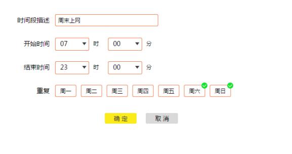 4;点击上网时间设置栏下的添加允许上网时间段,在弹出的界面设置上网时间。