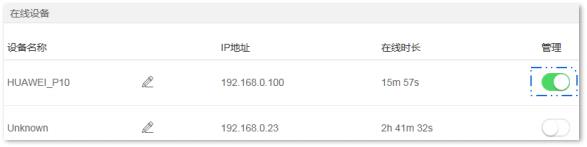 3;在在线列表中找到要控制的设备;点击【管理】开启按钮