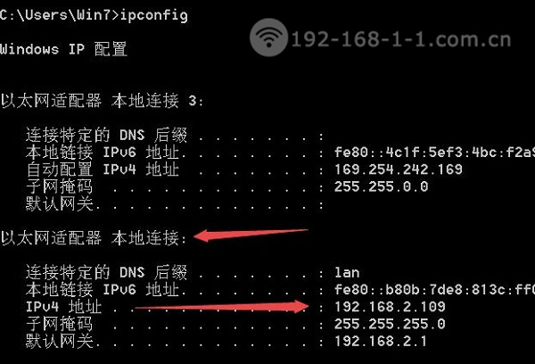 其中192.168.2.1为默认网关地址,也就是路由器的登录入口地址。
