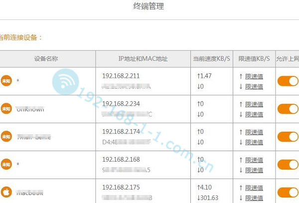 可以对某台设备进行网速限制,并管理其是否拥有联网权限。你可以在路由器管理页面中关闭其他任意一台设备的联网。