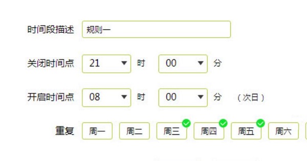 时间段为一天当中的几时至几时,下面为设置你需要在哪些日子关闭它,是每天还是指定星期几。