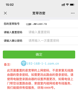 提醒:重置宽带密码后,你的网络可能会无法上网,因为你需要在光猫页面或路由器页面重新填入新的宽带密码进行拨号,才能联网,切记不要乱改密码。