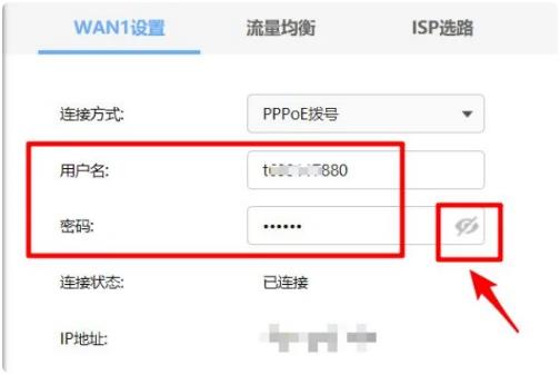 4;WAN口设置中会保存宽带账号和密码。一般宽带密码默认不显示,但是把小眼睛打开即可查看到明文密码了。