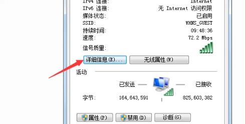 3;查看计算机IP地址:打开网络共享中心,点击你的当前网络连接,点击详细信息,即可显示IPv4地址。