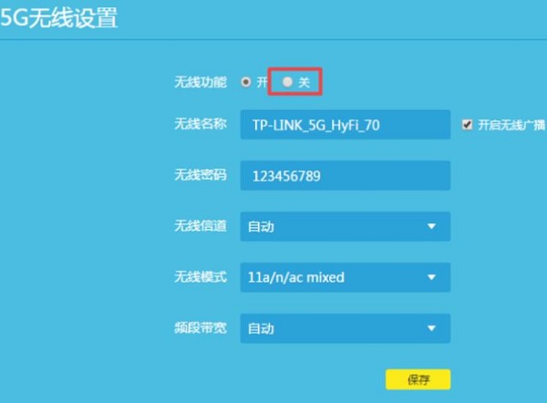 登录后,您应该会看到一个包含选项列表的页面。查找一个显示“关闭WiFi”或“禁用WiFi”的选项。单击此选项,您的路由器无线将会关闭。