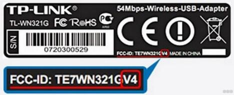 如果您可以访问 Internet,则可以通过选择设备的硬件版本在 tp-link.com 网站上下载它们。您可以通过查看设备背面来识别它。在标签上,查找带有无线适配器序列号的行,末尾将有字母 V 和一个指示设备版本的数字。它们在硬件和软件上都不同。如果您在“FCC – ID”行中没有此信息,请下载第一个版本。