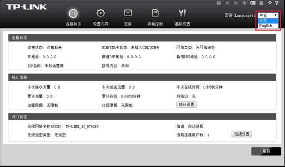 tp-link在中国大陆地区销售的路由器,管理界面均为简体中文,无法升级或设置为英文或其他语言界面。目前,仅部分便携式3G/4G路由器(TL-TR761系列/861系列/961系列)的管理界面可切换为英文。
