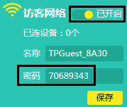 注意:触屏路由器访客网络的无线密码随机自动生成,并且会定时更新,可以在屏幕上查看到访客网络的动态密码。
