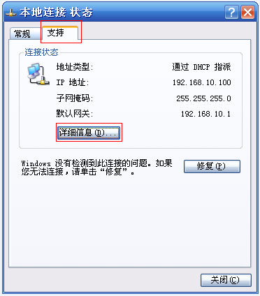 Windows XP操作系统有线网卡MAC地址查看方式如下: