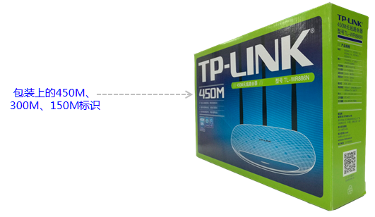 无线路由器包装或壳体上可以看到“450M”、“300M”、“150M”等标识,许多用户误以为是无线信号的传输距离,把M误解为“米”。实际上,这个标识指的是无线路由器的无线最高速率,如标识“450M”的路由器,表示无线信号最高可以达到450Mbps(理论速率)。