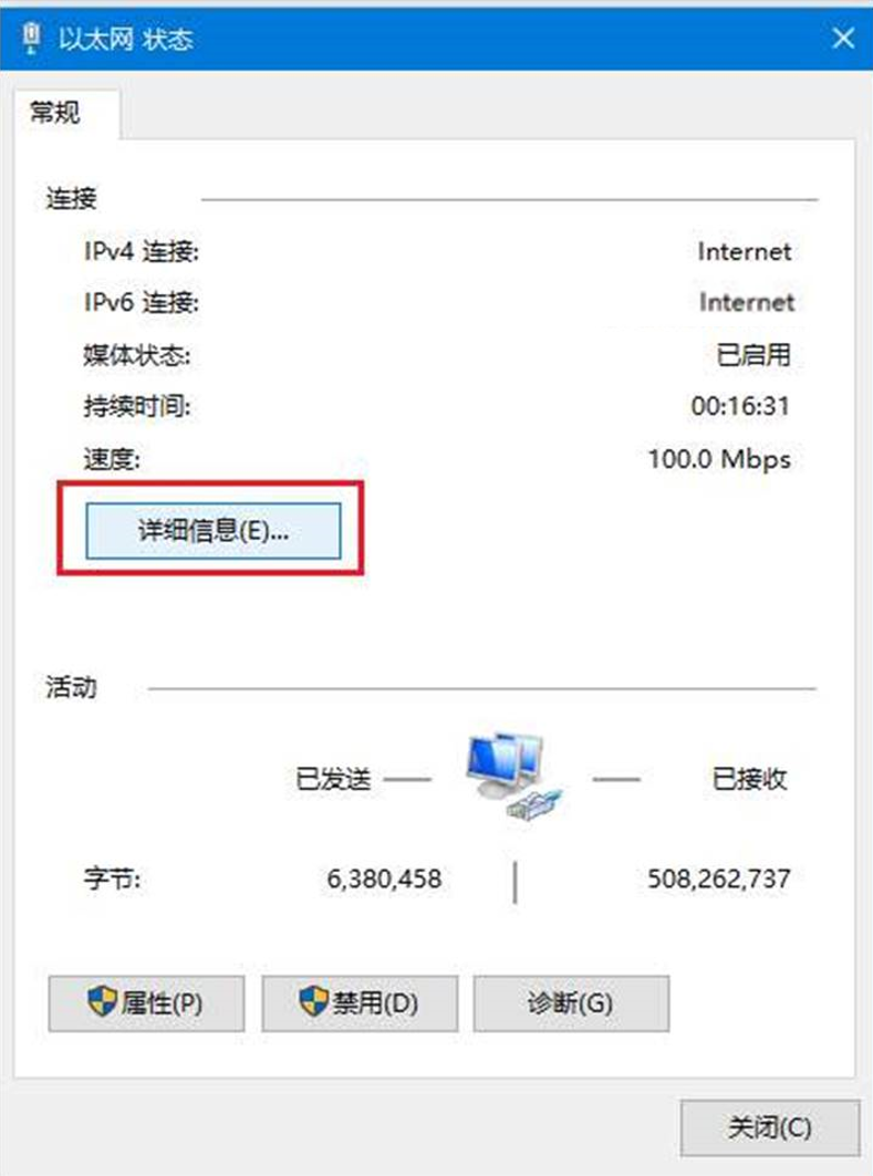 拨号成功后,右键点击“宽带连接”点击“状态”,在“详细信息”中查看此时电脑获取的IP地址,若可以获取到2开头的IPv6全球地址,则说明宽带支持IPv6。