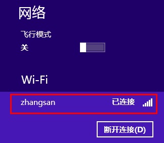 在网络列表中点击该无线信号,显示已连接,说明无线网卡已经成功连接无线网络,如下图: