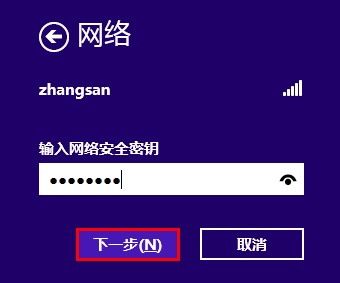 输入无线密码,点击下一步。如下图: