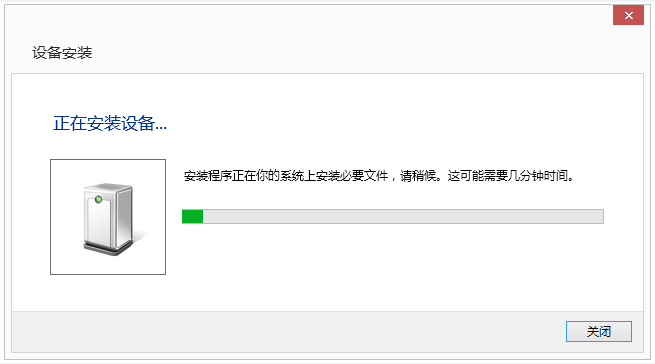 稍等片刻后,提示连接成功,点击关闭,如下: