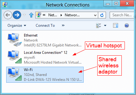• 因此,当您返回网络连接窗口时,WiFi设备显示为共享。